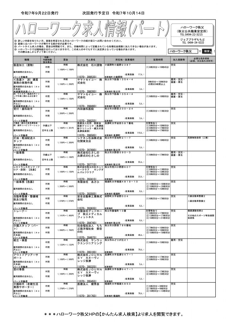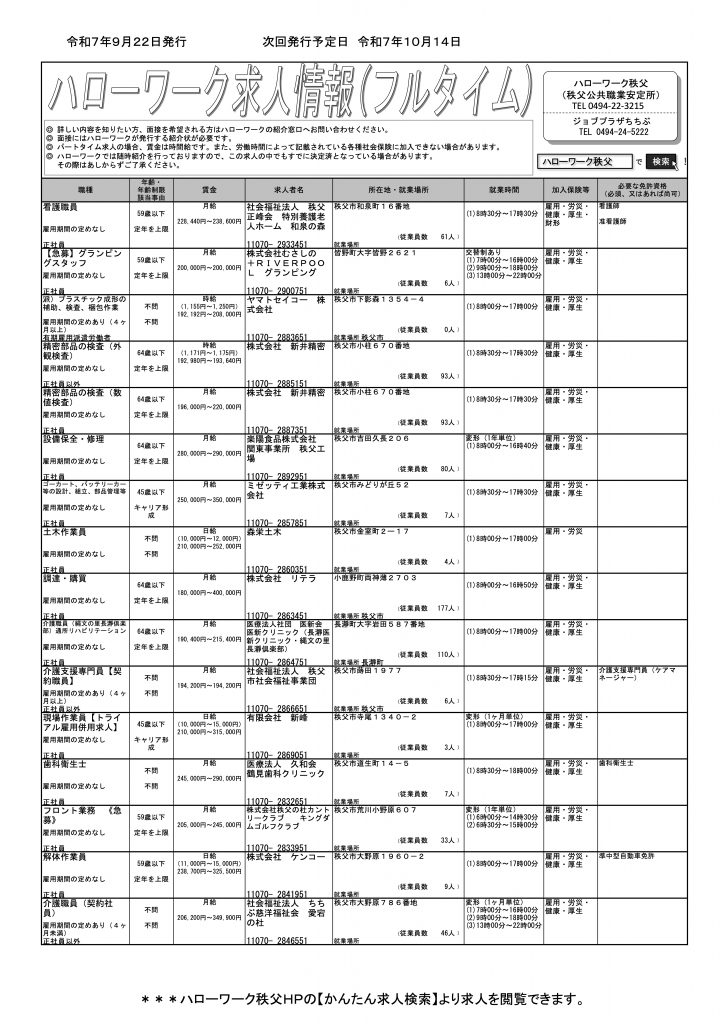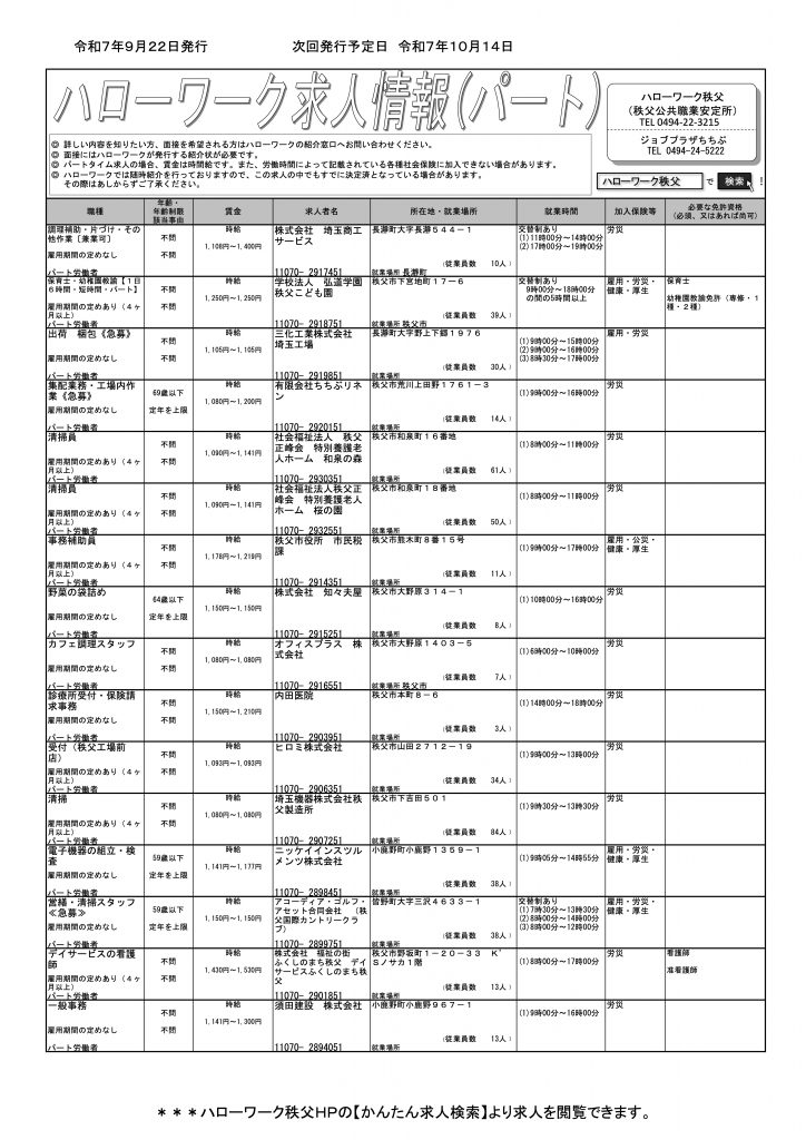 「フルタイム」版と「パートタイム」版の情報は、「ハローワーク秩父」のサイト上からと下記、添付の『チラシタイプ』からご確認ください。