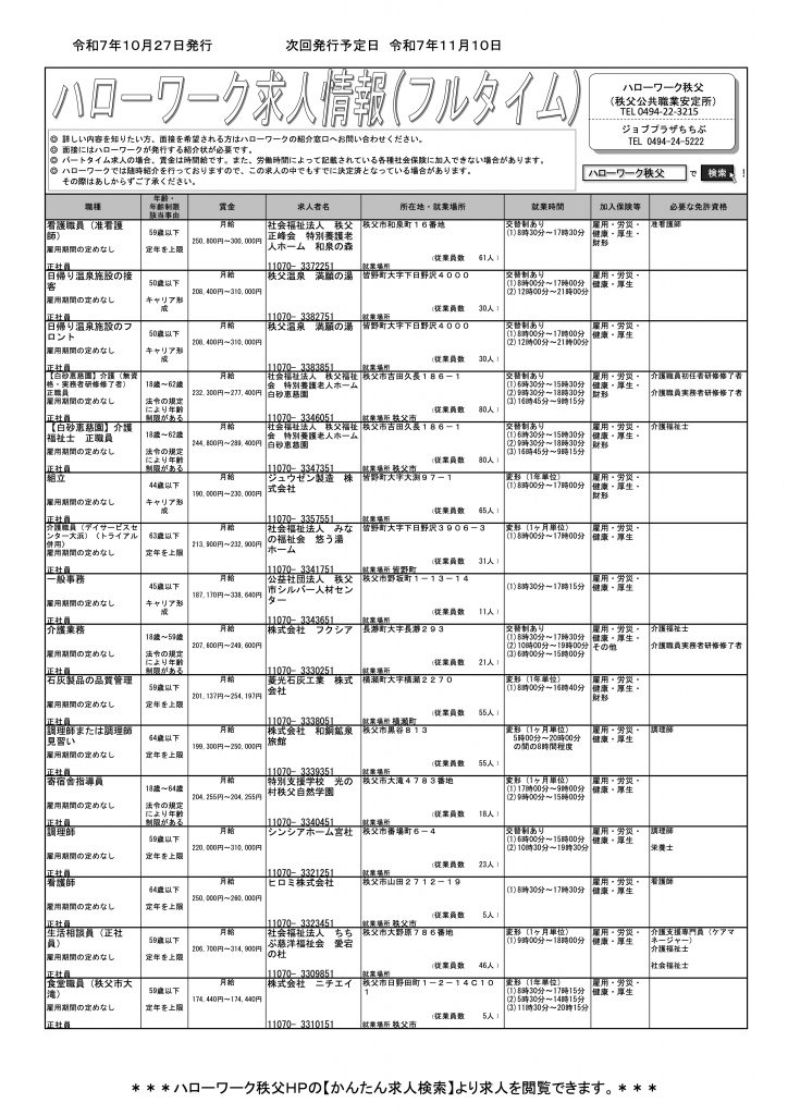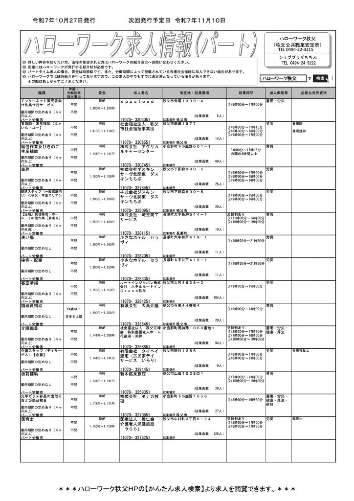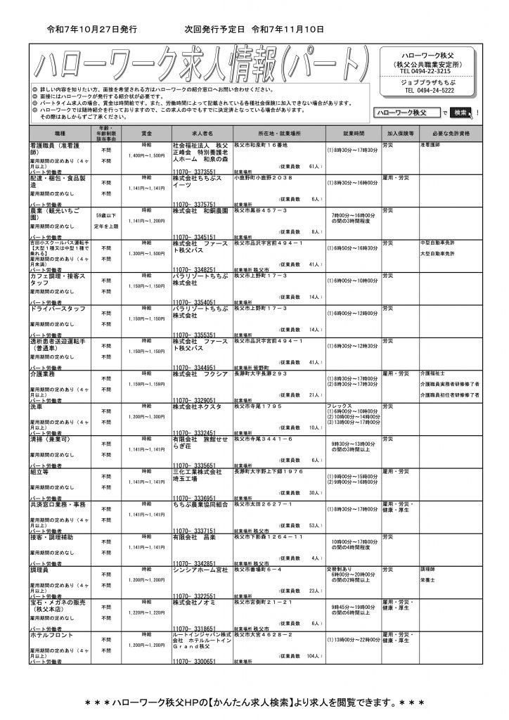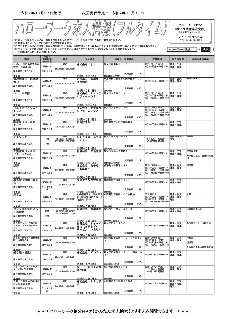 「フルタイム」版と「パートタイム」版の情報は、「ハローワーク秩父」のサイト上からと下記、添付の『チラシタイプ』からご確認ください。