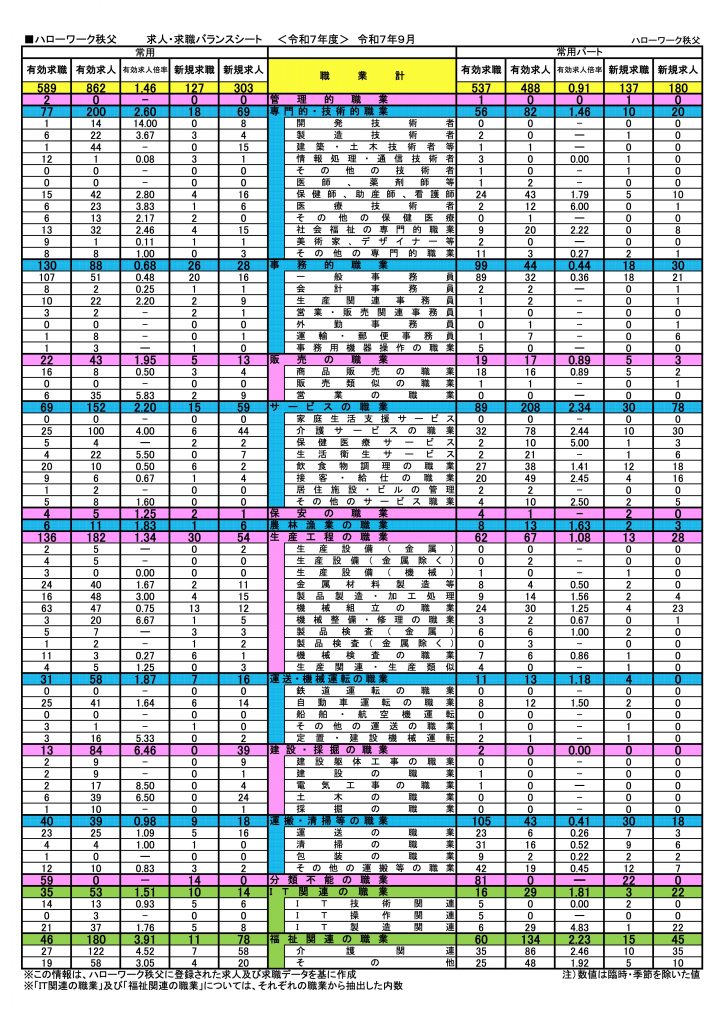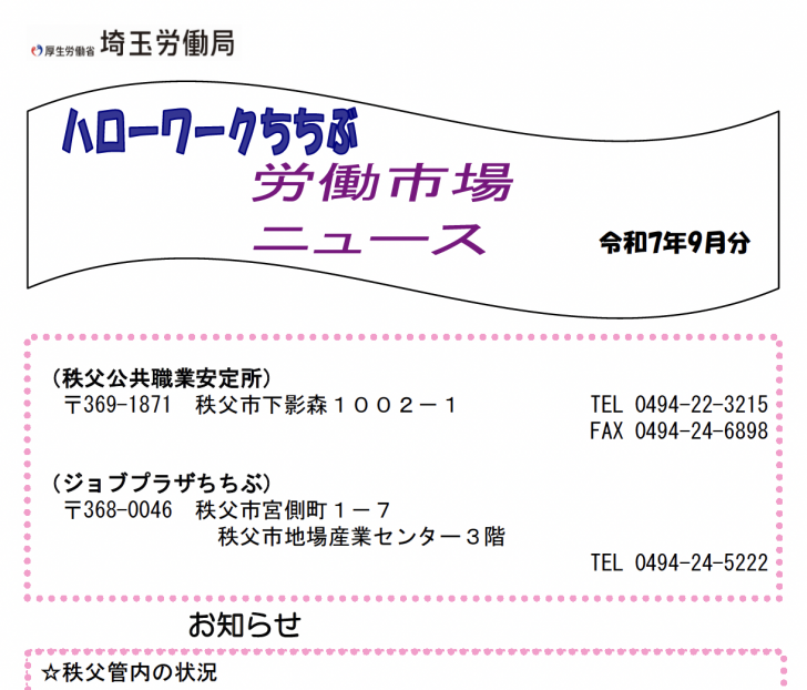 『秩父地域の求職・求人状況』令和7年9月分をご案内いたします。