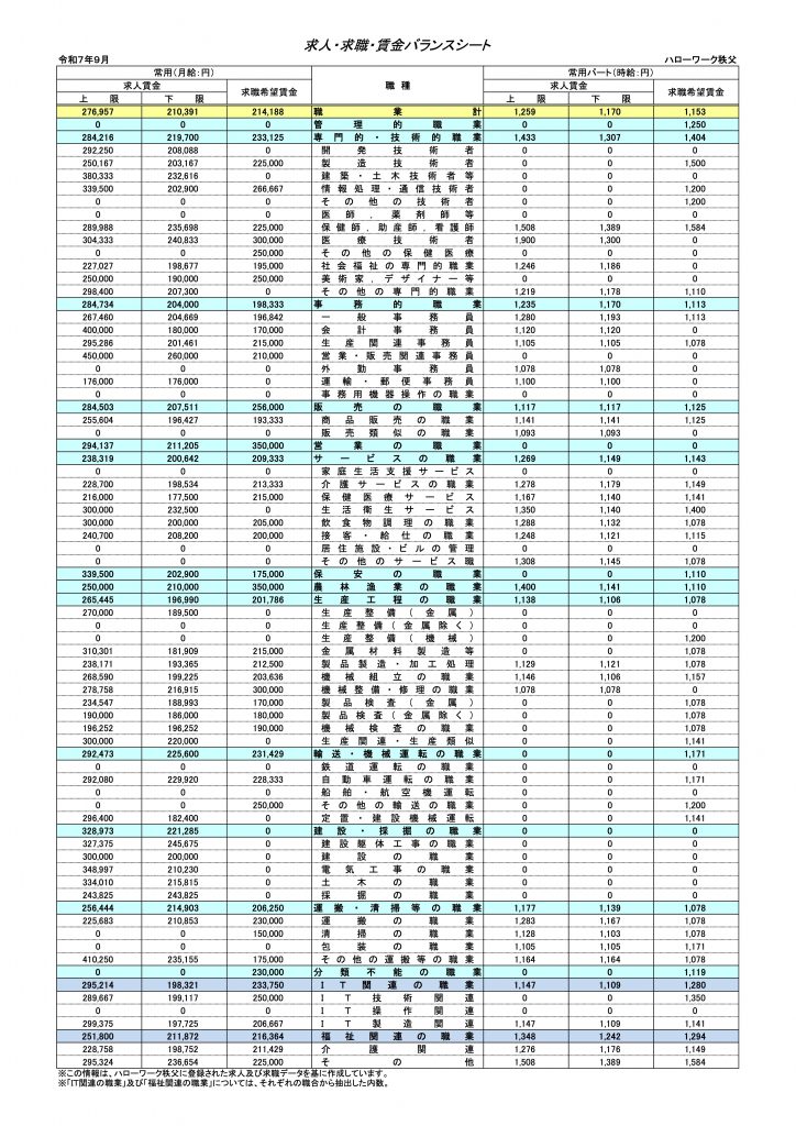 ・秩父地域における「求人賃金と求職賃金が職業別に月次で集計」した『求人・求職・賃金バランスシート』*ハローワーク秩父提供