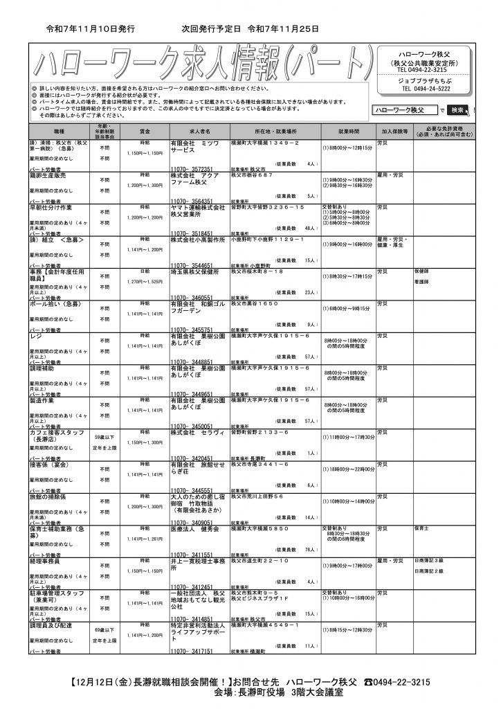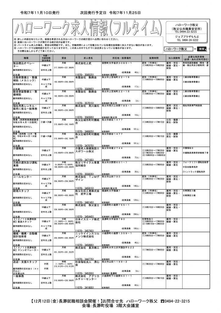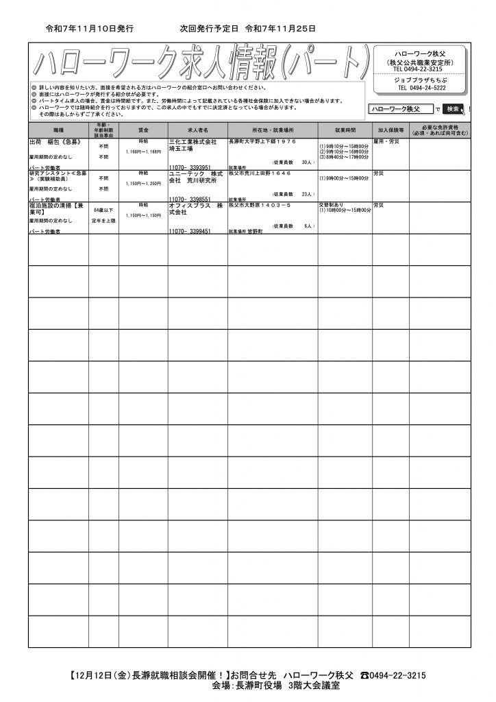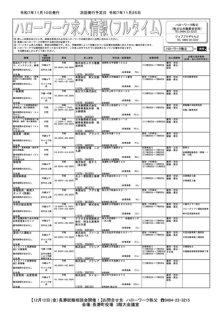 「フルタイム」版と「パートタイム」版の情報は、「ハローワーク秩父」のサイト上からと下記、添付の『チラシタイプ』からご確認ください。