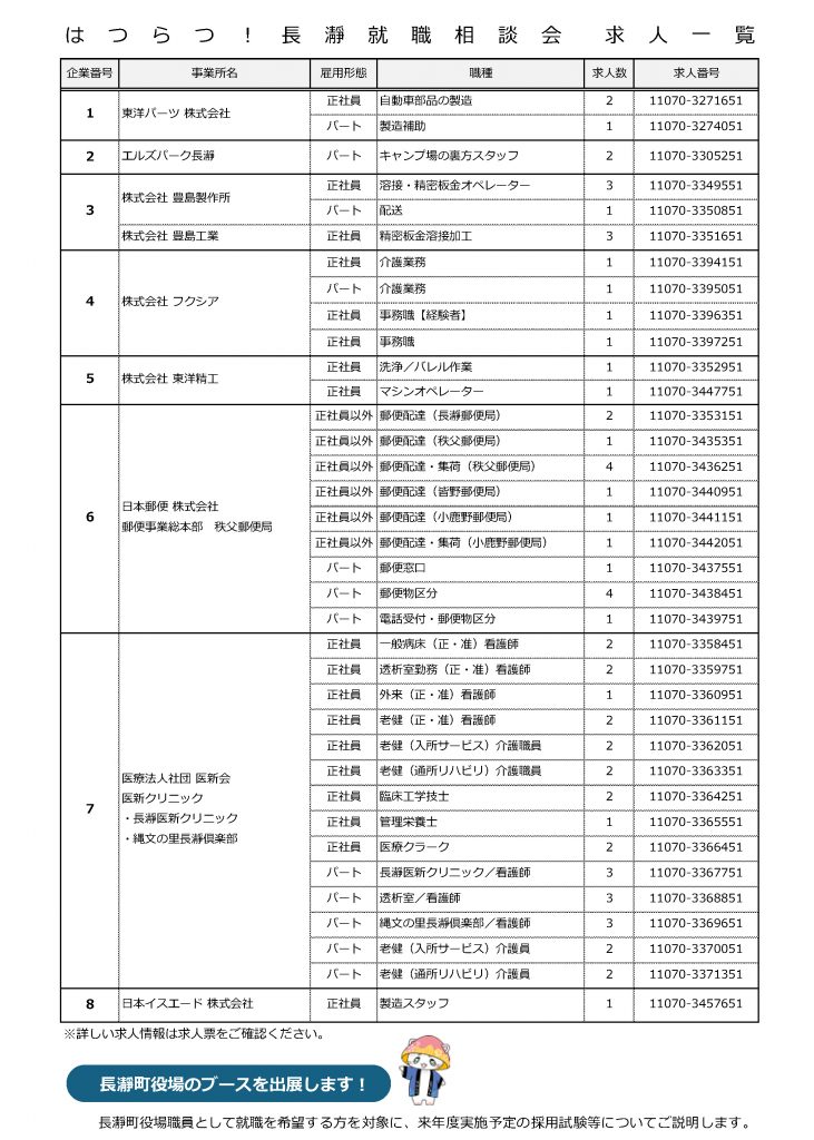 また、当日会場では“長瀞町役場ブース”が出展され、長瀞町役場職員として就職を希望する方を対象に来年度実施予定の採用試験等について説明を受けることができますので、ご希望の方はぜひお立ち寄りください。