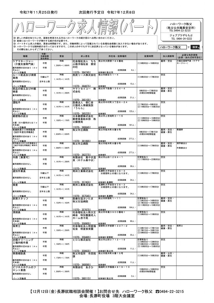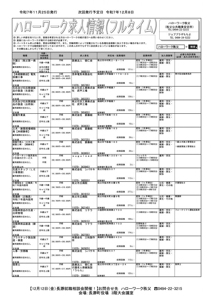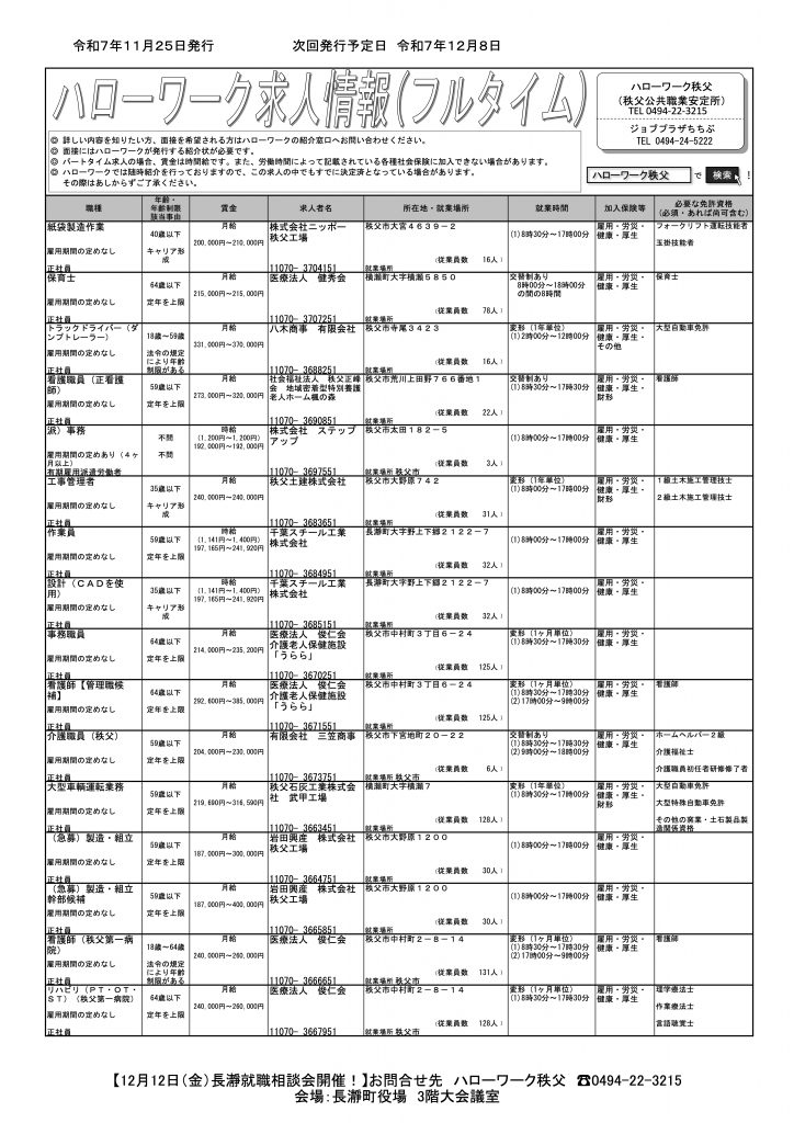 「フルタイム」版と「パートタイム」版の情報は、「ハローワーク秩父」のサイト上からと下記、添付の『チラシタイプ』からご確認ください。