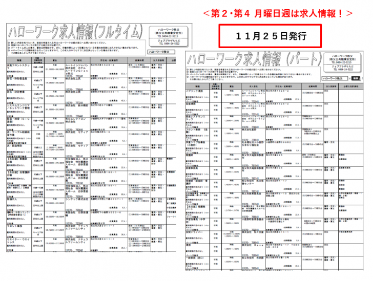 ハローワーク秩父 にて第2、4週の月曜日更新(今週は月曜日が祭日のため、火曜日発行)の『求人情報』(フルタイム版&パートタイム版)のご案内です。
