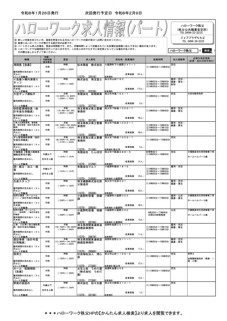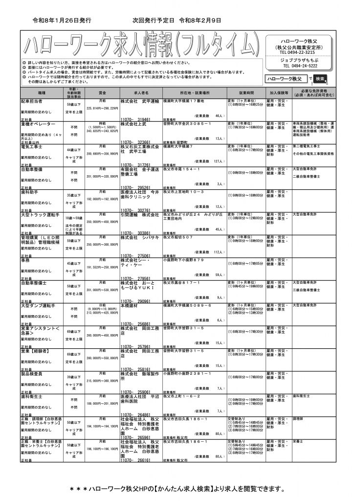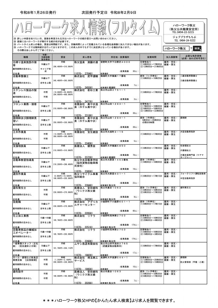 更新されました!ハローワーク秩父 求人情報_1/13号