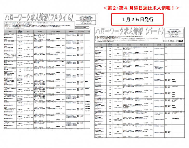「フルタイム」版と「パートタイム」版の情報は、「ハローワーク秩父」のサイト上からと下記、添付の『チラシタイプ』からご確認ください。