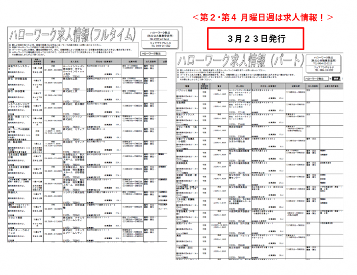 「フルタイム」版と「パートタイム」版の情報は、「ハローワーク秩父」のサイト上からと下記、添付の『チラシタイプ』からご確認ください。